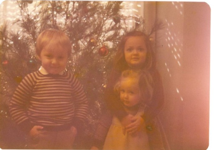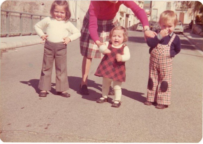 Como podéis ver, mi capacidad fotogénica no aumentaba con la edad: aquí estoy con mis dos hermanas mientras mi madre intenta, sin mucho éxito, que no salga en la foto sacándome un moco.